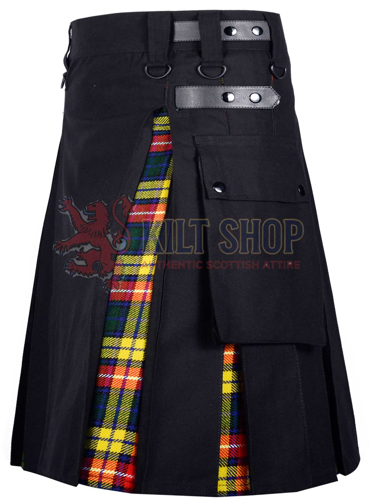 Black Cotton Buchanan Tartan Hybrid Kilt