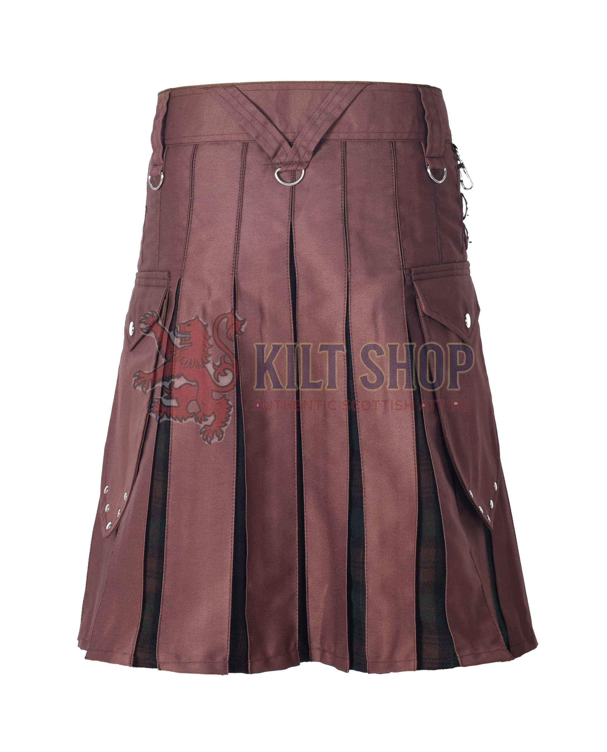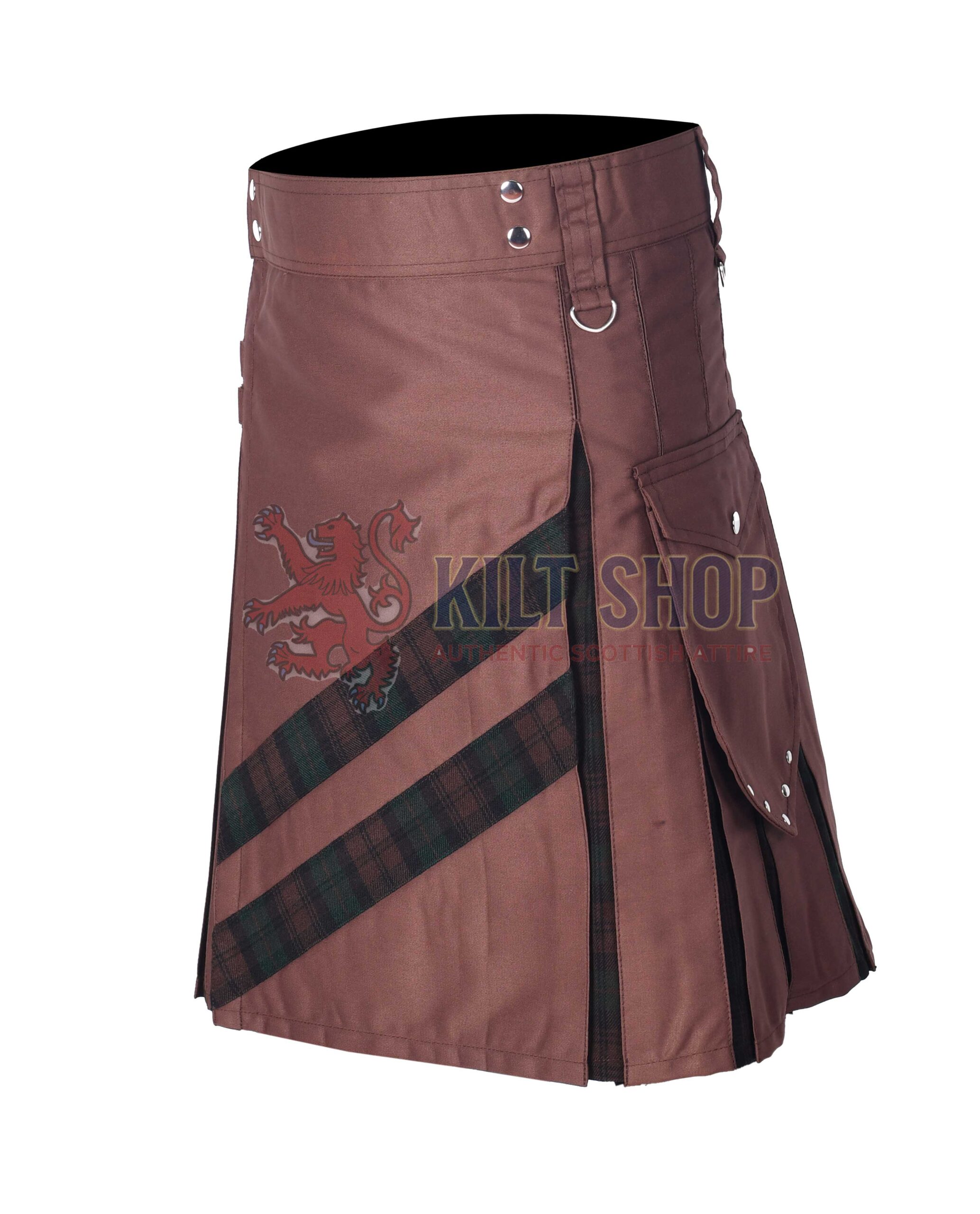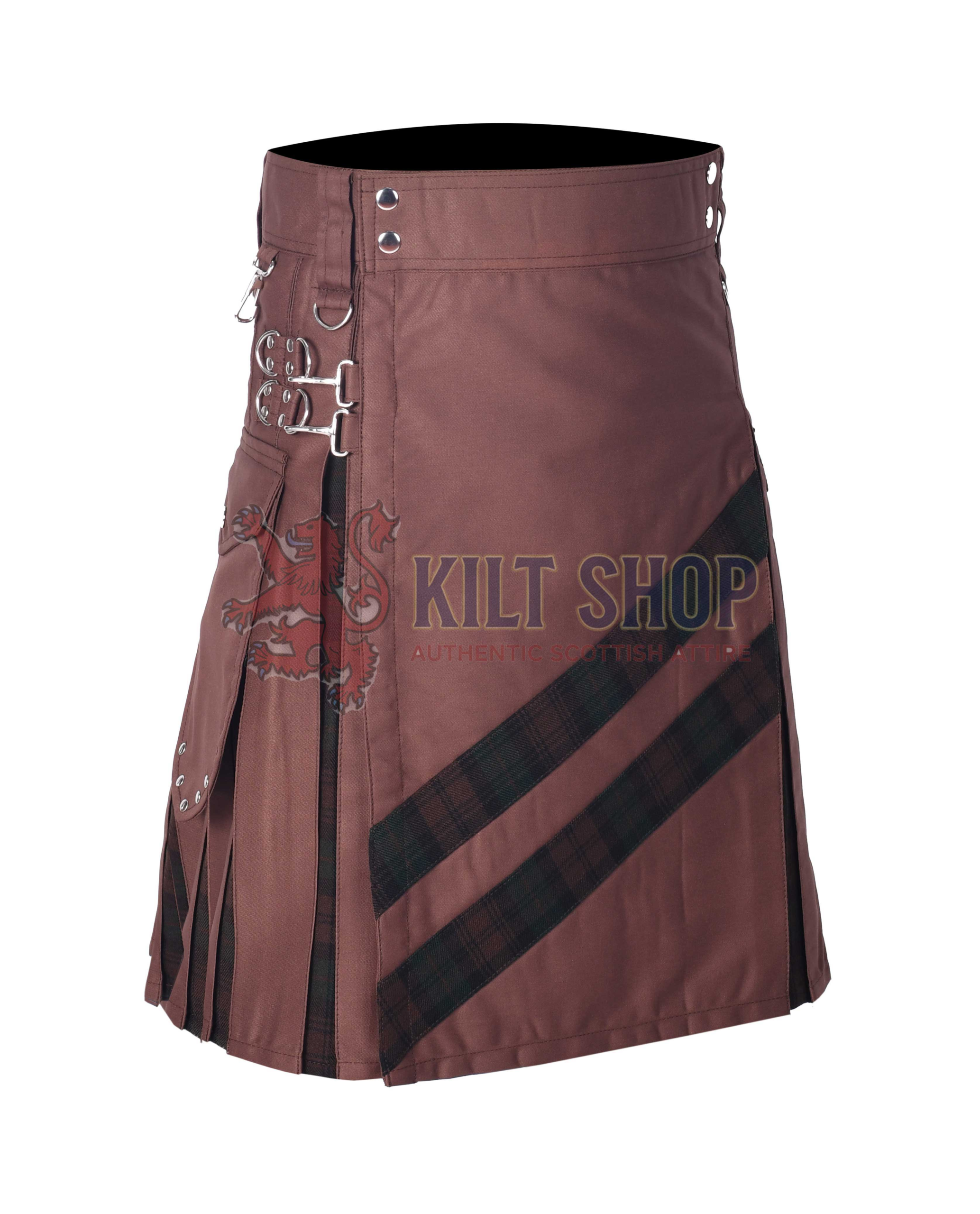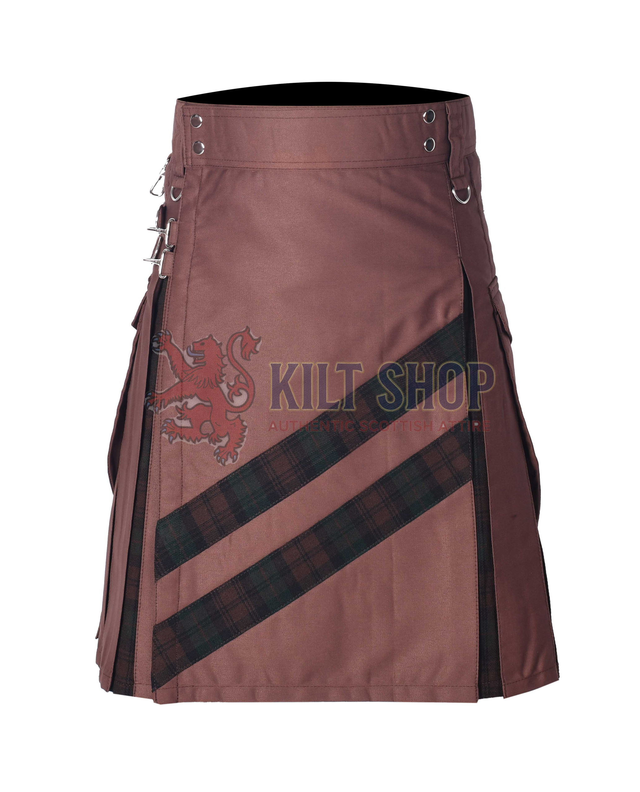 Crafted from high-quality cotton fabric, this kilt offers excellent breathability, comfort, and durability for all-day wear. The Brown Watch tartan, known for its warm earth tones and distinctive pattern, provides a subtle nod to Scottish tradition while blending seamlessly with the brown cotton body. The hybrid design ensures ease of movement while maintaining the authentic kilt silhouette, making it suitable for casual outings, festivals, Highland games, and everyday wear.