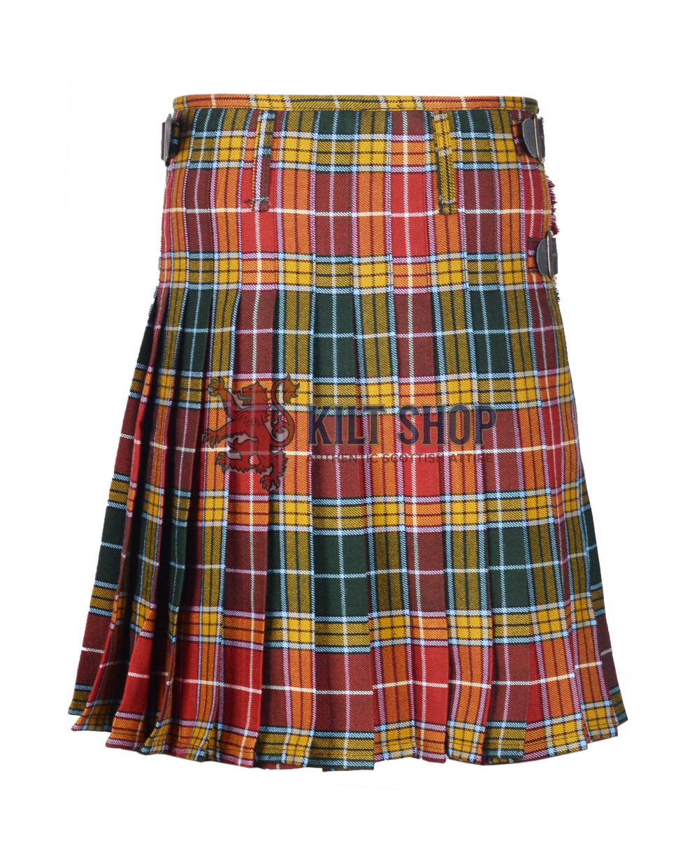 The muted Buchanan Tartan pattern provides a subtle yet distinguished look, suitable for both modern and traditional settings. Each kilt is carefully stitched and pleated to maintain its shape and structure, ensuring long-lasting wear.