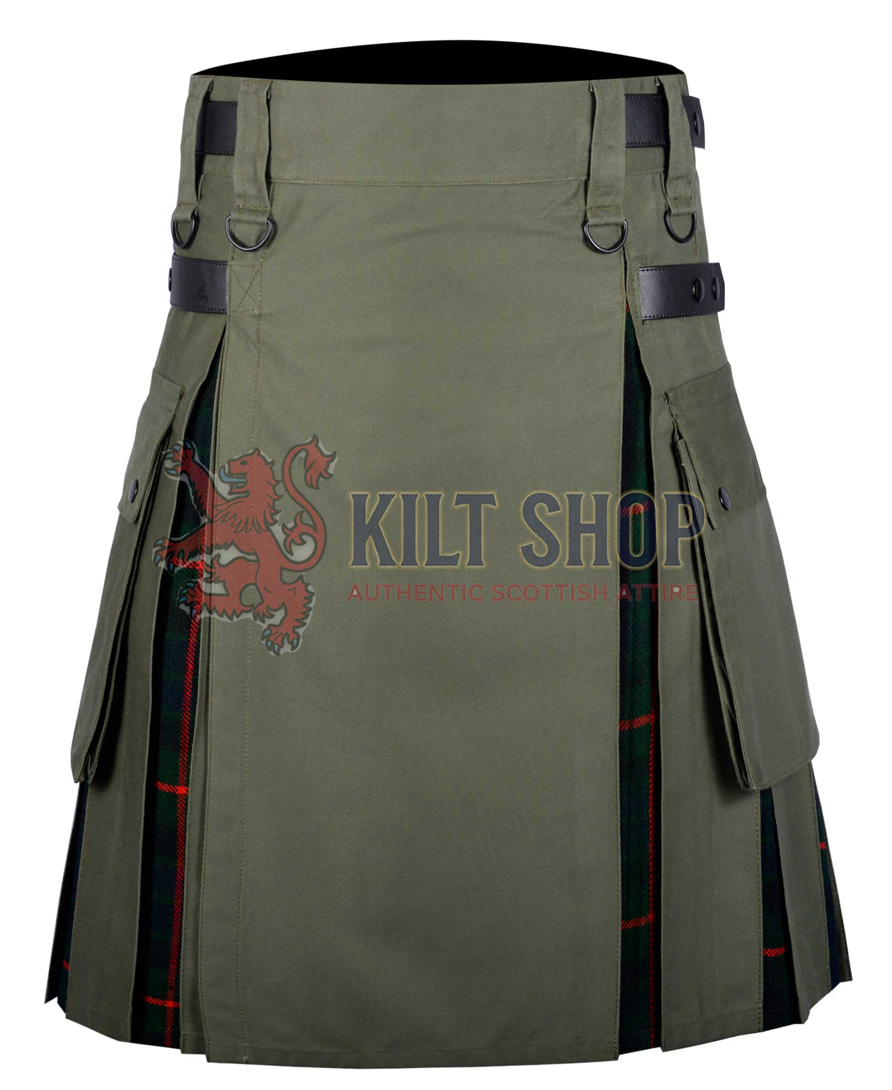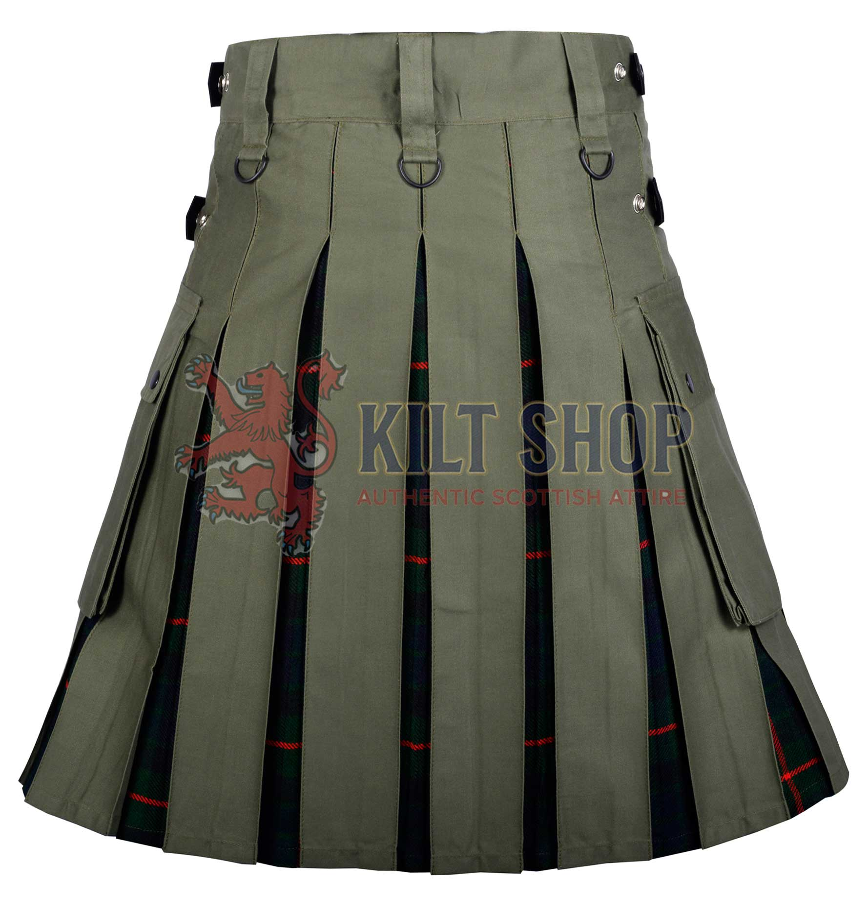 Olive Green Cotton Gunn Tartan Hybrid Kilt