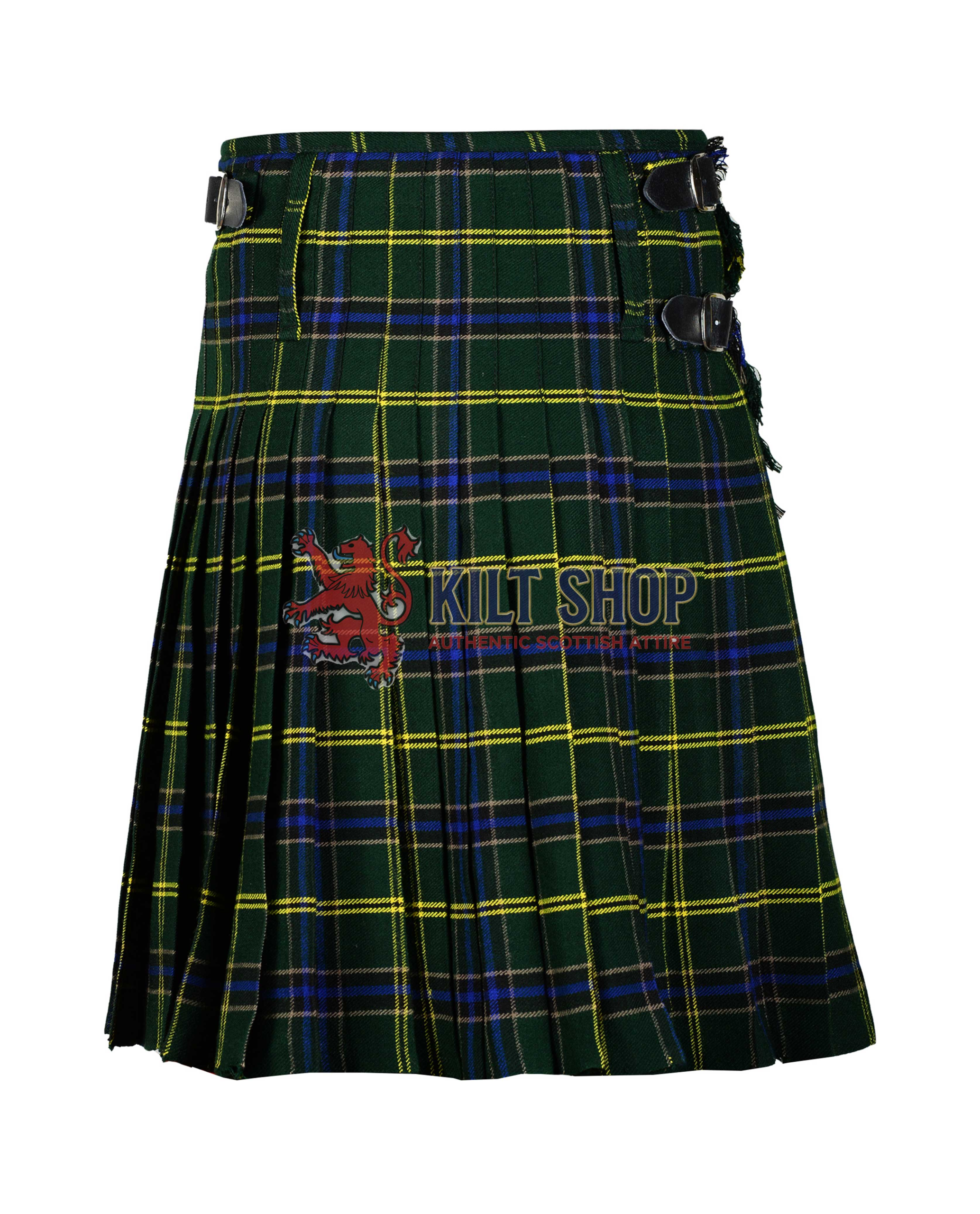The classic design features expertly pleated fabric, a reinforced waist, and adjustable straps to ensure a secure and comfortable fit. The US Army tartan displays a distinguished pattern of green, black, and gold tones, symbolizing honor, duty, and service. Every detail, from precise pleating to neatly stitched seams, reflects superior craftsmanship.
